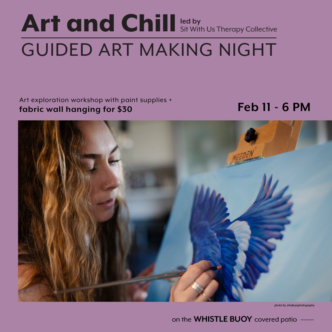 Join art therapists Mandy Leinbach and Shamika Singh from the Sit With Us Therapy Collective at Whistle Buoy for a relaxed evening of intuitive art-making and connection. Create a painted self-love wall hanging inspired by gentle prompts - all materials provided, no art experience needed.
